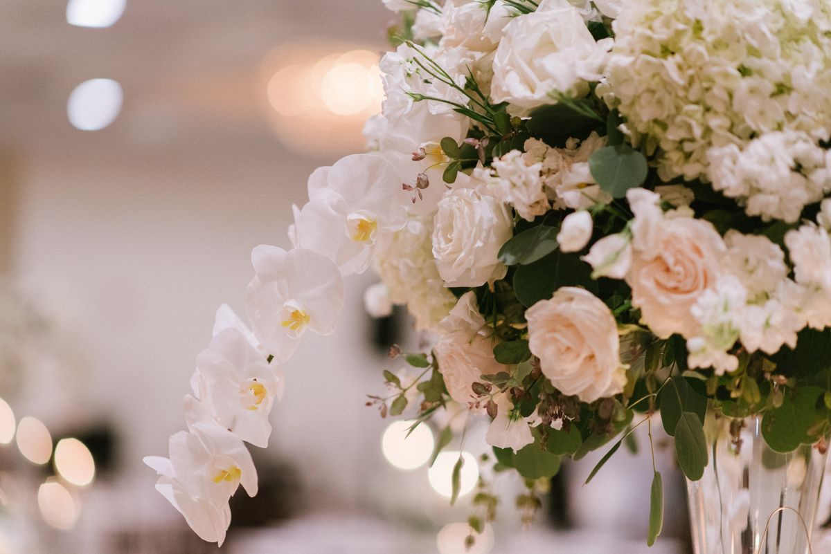 Amanda & Daniel Wedding – High Centerpiece Silver Dollar Parv Euc Hydrangea Lisianthus Phal Orchid Rose Stock – Stonebridge Country Club Long Island – by Off Beet Productions – 762