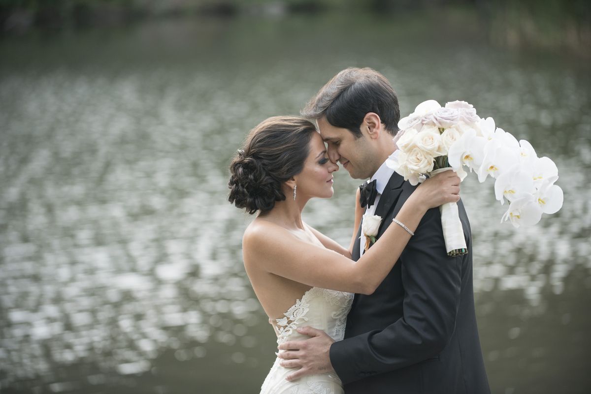 Anna & Matthew Wedding – Bride and Groom – Cascading Bride Bouquet -Pierre Hotel NYC – by Brett Matthews