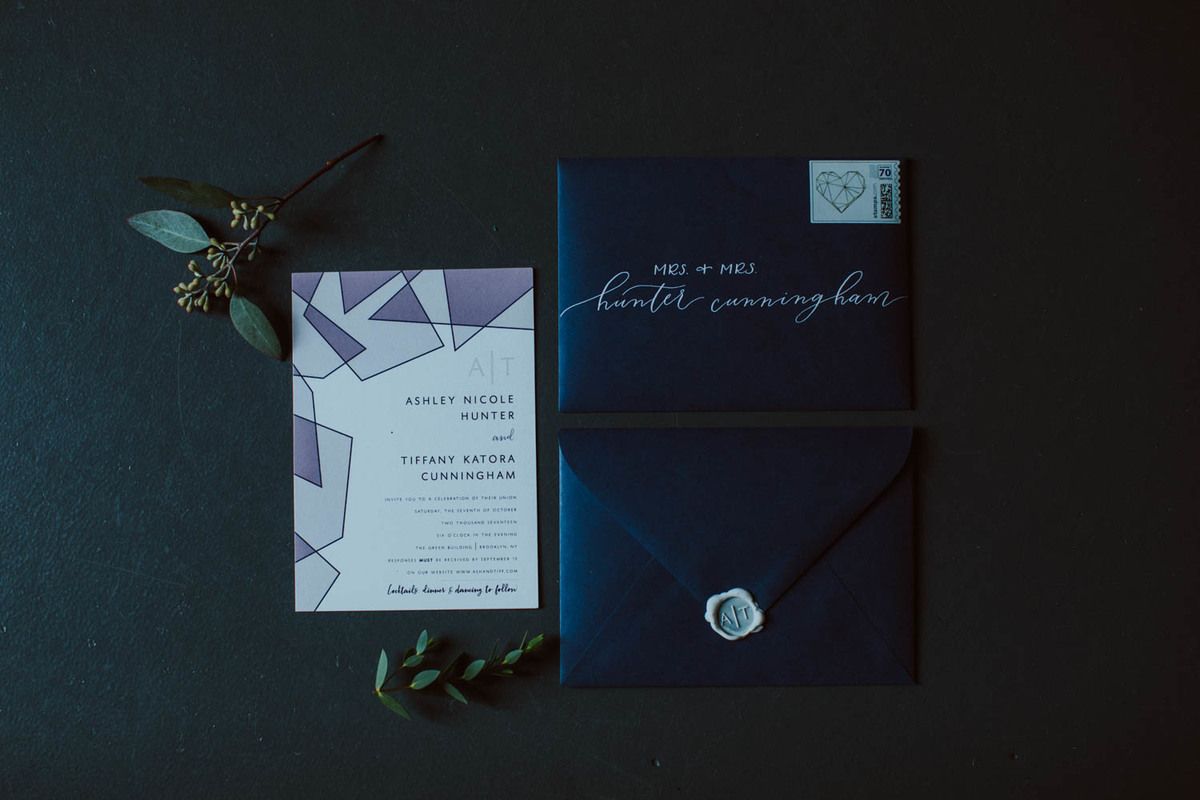 Ashley & Tiffany Wedding – Invitation Suite by Sincerely Amy Designs – Green Building Brooklyn – by Amber Gress – 0002