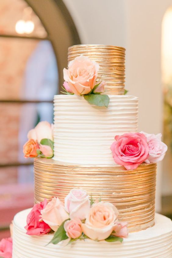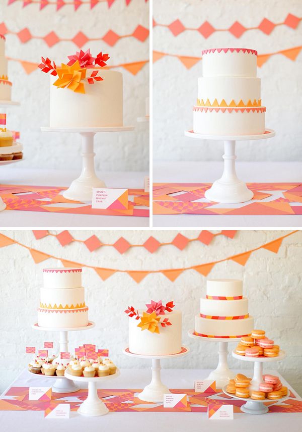 - Peach, Pink, Orange Color Scheme – Bright Fall Wedding – Wedding Cake – via Style Me Pretty.com