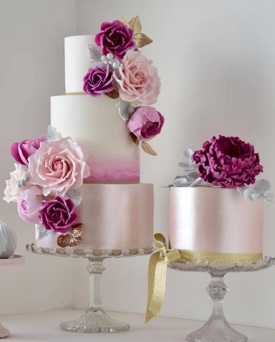 - Lilac, Berry, Blush Color Scheme – Wedding Cake – Cotton and Crumb – via Mod Wedding.com