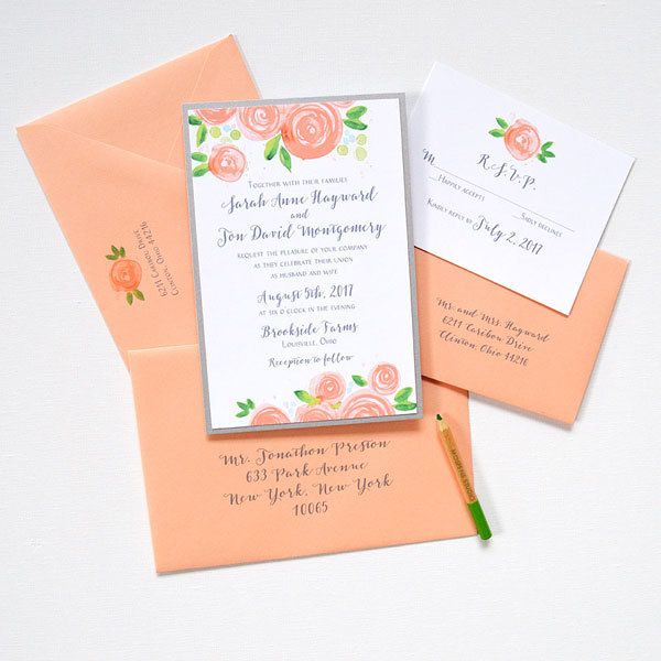 - Peach Rose Blooms Wedding Invitations – Layered Peach Rose – via Mospens Studio