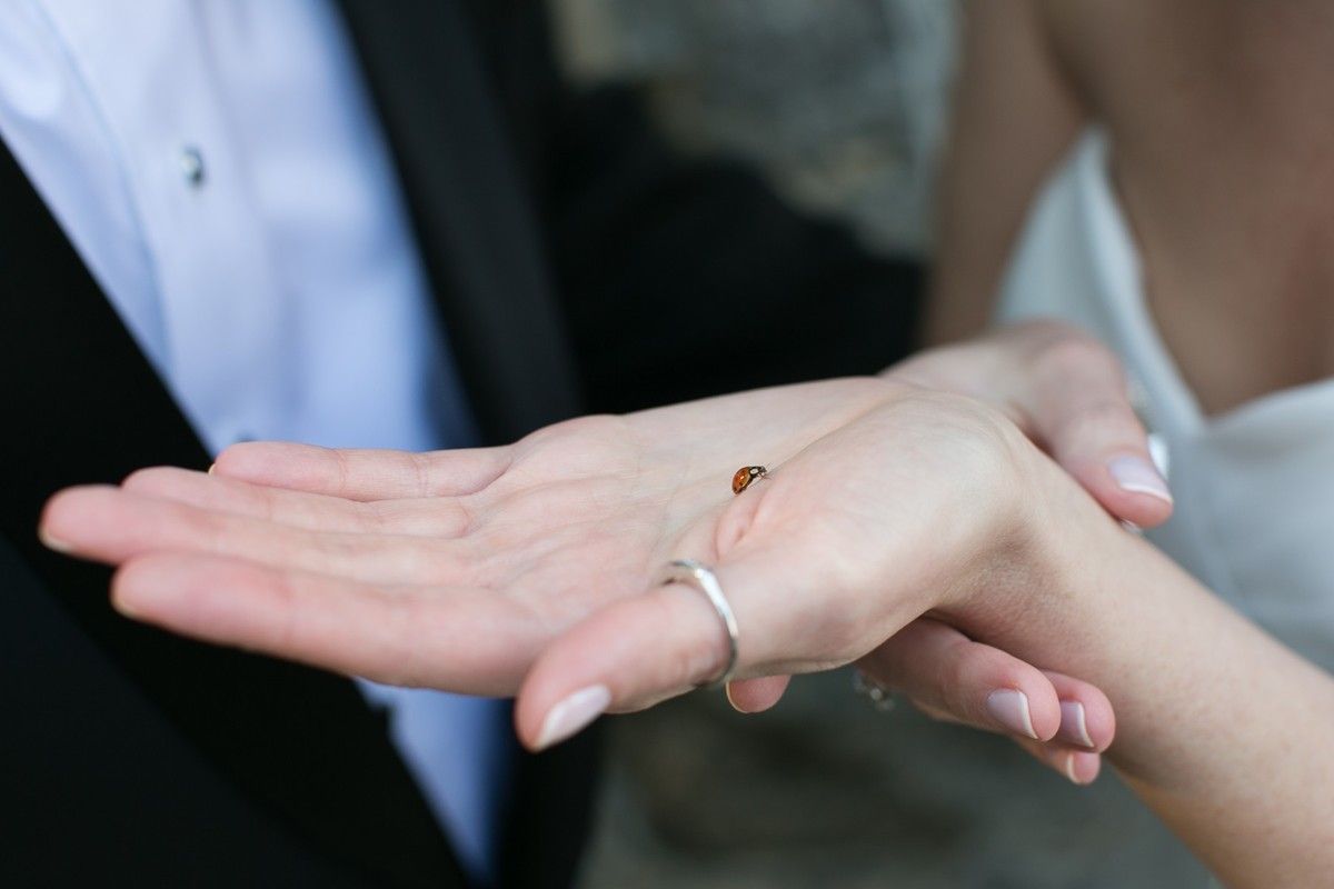 When people always say “it’s a blur,” they were so right. It all goes by so fast and the next day you can only remember certain moments. Something really special that happened was, before I went out to meet Aaron, my mom gave me my Nana’s ring to wear as my “something borrowed.” Right after, Aaron and I went to take photos around the castle grounds and we noticed that my dress was covered with Lady Bugs. I mean, a LOT of Lady Bugs. Our photographer even put down his camera to help pick them off my dress. Luckily, it’s the one bug I like! Had it been anything else I probably would have taken off my dress right there in the garden. A lot of people say that Lady Bugs are a sign from heaven and also a symbol of good luck. We made a lot of wishes that day.