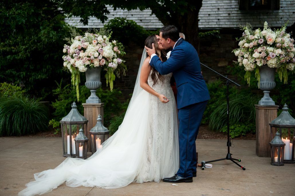 Lauren and Jordan Wedding – Bride and Groom First Kiss – Blue Hill at Stone Barns NY – Photography by Craig Paulson