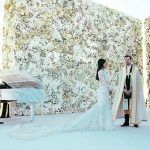 - White Flower Wall at Kim Kardashian and Kanye West Wedding – photo by E! Online