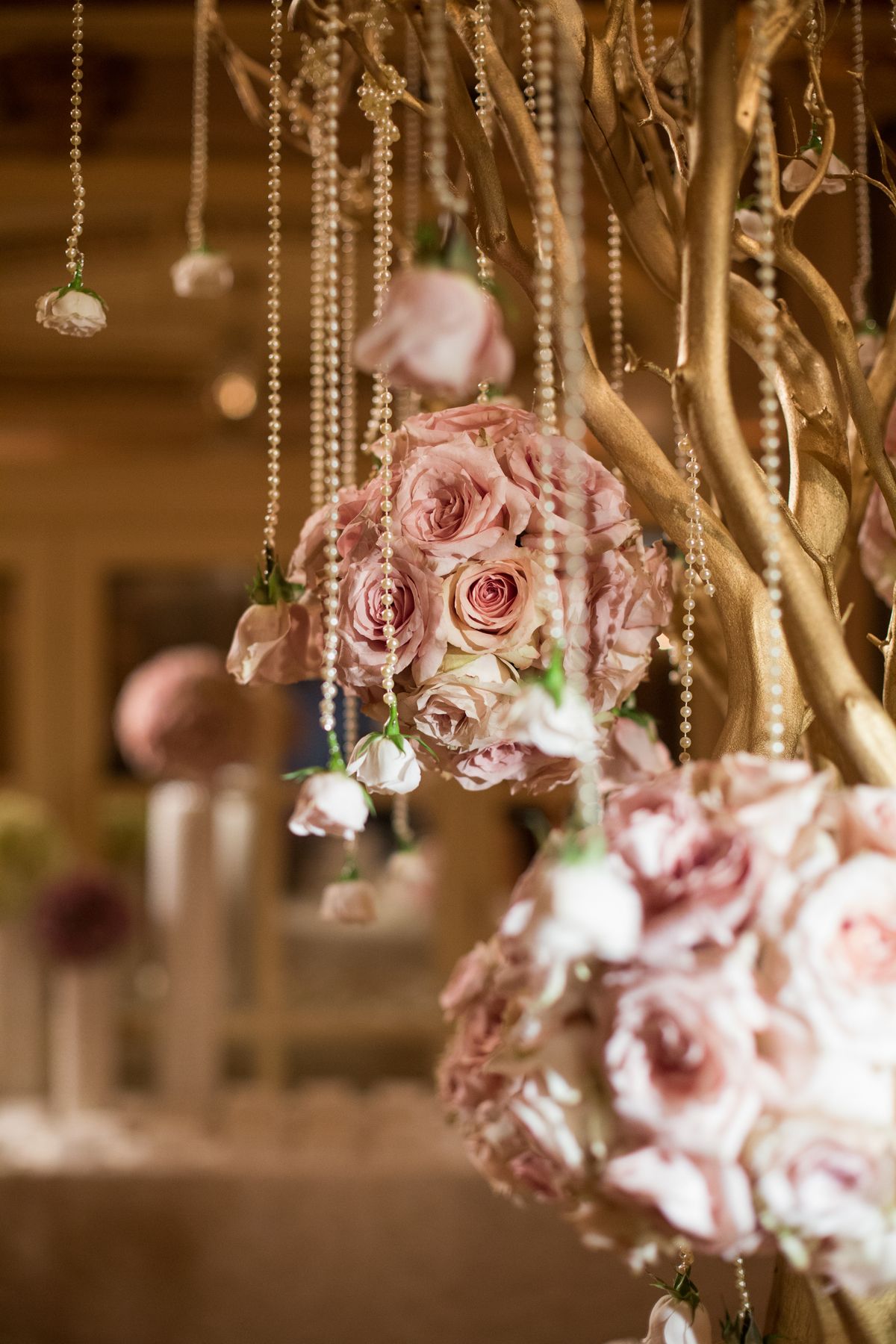 “I wanted each centerpiece to have 360 roses to signify a full circle like our rings,” said Marianna. “Corny, I know, but I am a girl who knows what she wants.” We arranged over 10,000 specialty roses in shades of cream, blush, and lavender to create dramatic, high centerpieces with an ombré effect.