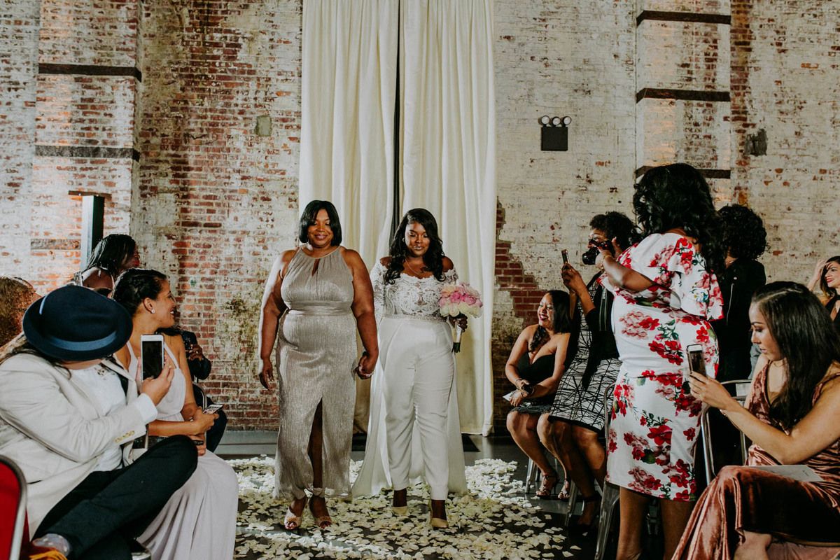 Ashley & Tiffany Wedding – Ashley Coming Down Aisle – Green Building Brooklyn – Amber Gress Photography