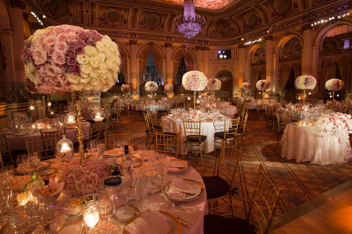 Marianna & Jason Wedding – Tall Centerpiece Rose – Plaza Hotel – by Fred Marcus Photography