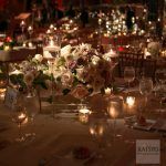 With its dazzling chandeliers, gilded coffered ceilings, and marble floors, the Plaza Hotel represents the history and grand style of classic New York. Marianna and Jason’s wedding shows how to decorate in a way that complements rather than competes with such a magnificent venue. Tall centerpieces featured cream mondial roses, quicksand roses, and amnesia roses in golden candelabra. Each flower type was placed in a group to form a classic, round arrangement as hanging glass bubbles filled with tea lights and ivory pearls finished the opulent, yet sophisticated presentation.