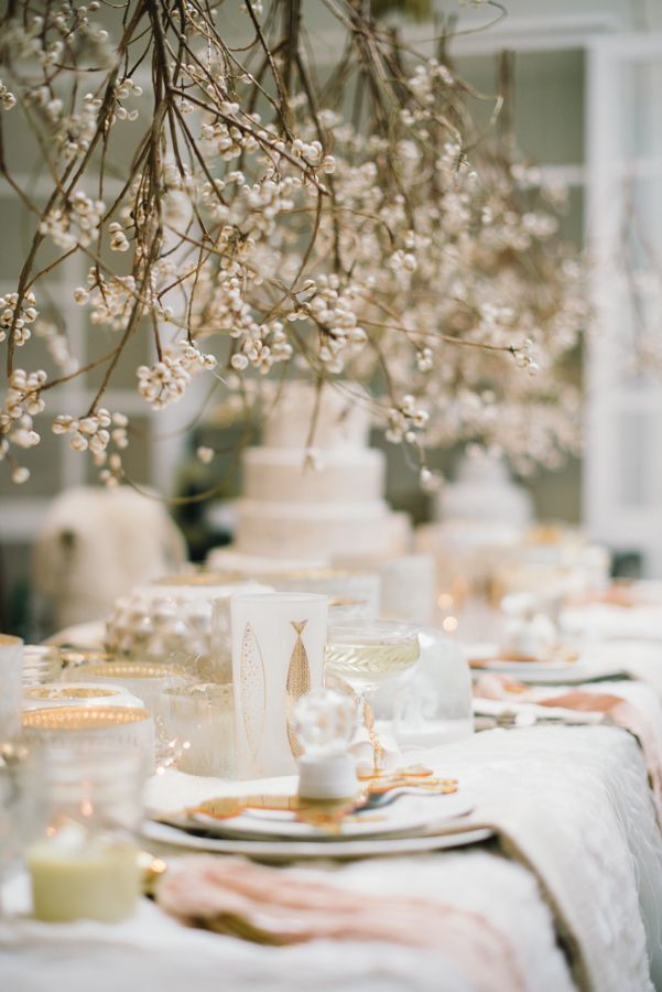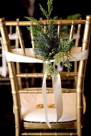 Fir branches have long served as an emblem of the winter holidays and the coming of the New Year. There are countless ways of incorporating these noble, evergreen branches. Beyond garlands, wreaths, and chair accents, fir branches are great accents for wedding cakes, napkin rings, or table cards.