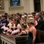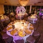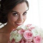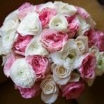 To create rounded, compact bouquets, we used petal-dense roses, garden roses and ranunculus. The sweet flower girl carried a pomander ball of carnations. Lush, tall centerpieces set the mood at Giando on the Water. Loosely arranged white hydrangea and ranunculus, blush stock and garden roses and cream roses were loosely arranged in trumpet vases. Cascading burgundy amaranthus and candles in crystal added over the top romance.
