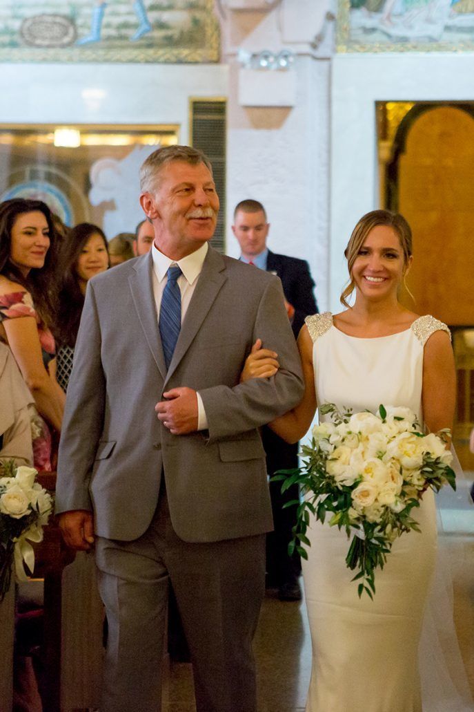 The Greek Orthodox wedding ceremony is filled with symbols that represent the important elements of marriage. The ritual lighting of candles and crowning of the bride and groom bared particular significance at this wedding. The couple used family treasures to honor their loving bond. “The Stephana (crowns) that we wore on our wedding day are Steven’s parents’ Stephana from when they were married over 38 years ago” Aerin says. “Our Lambades (candles) were the same candles that Steven’s grandparents used at their wedding over 58 years ago!”