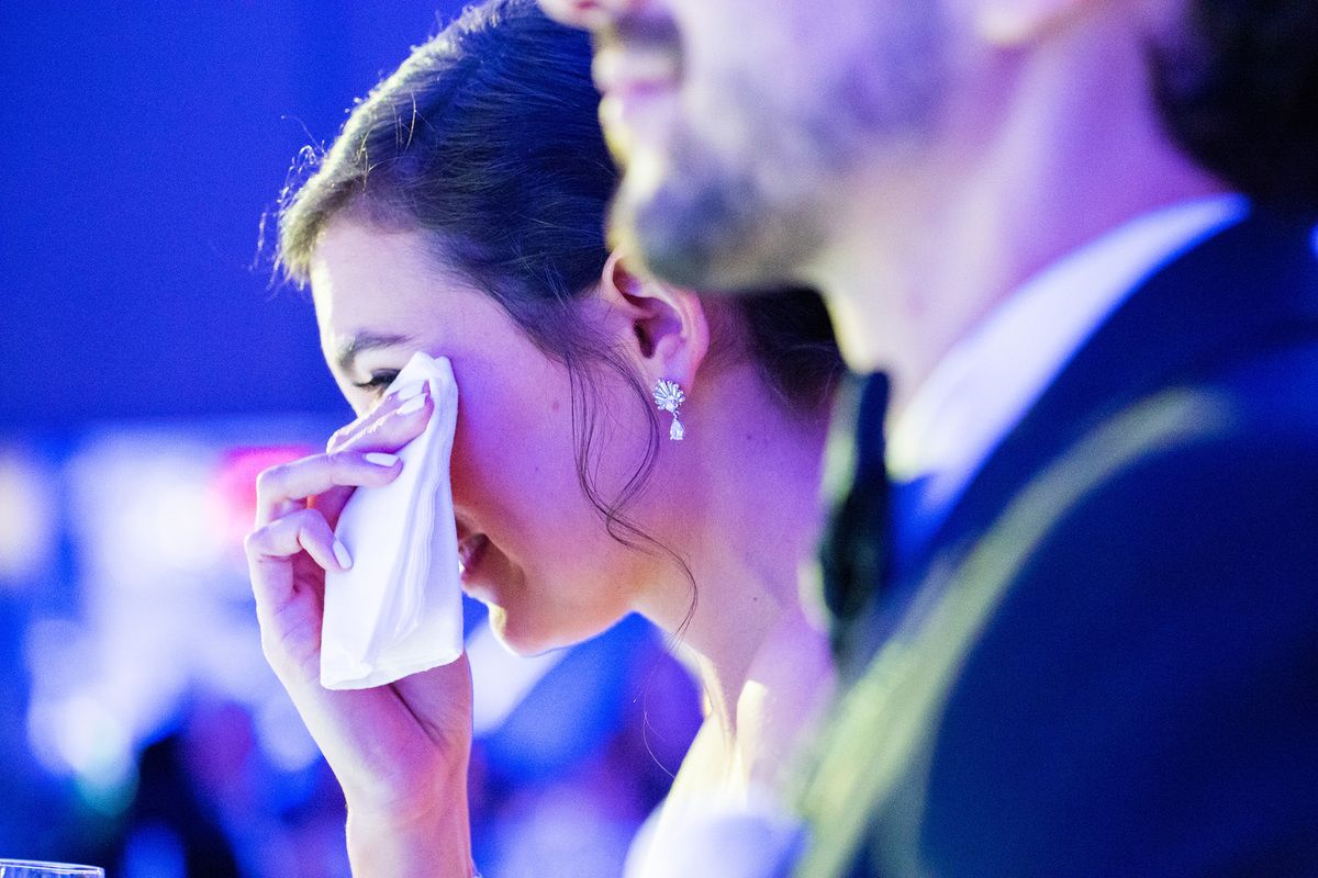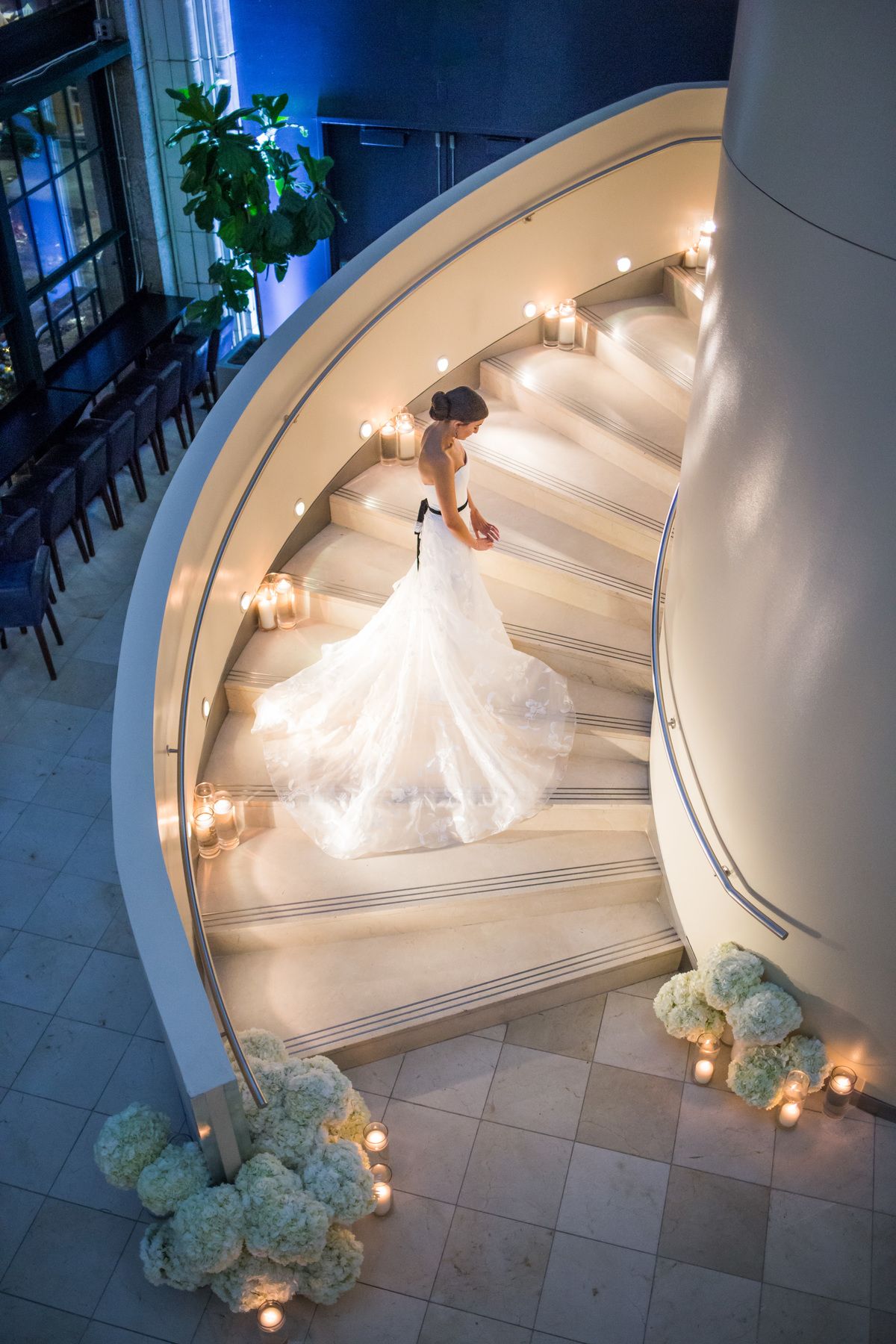 Madalyn and Jon sought the expertise of Guastavino’s catering to help create their 4-tier wedding cake. The chic, all white design featured black ribbon detail, which echoed Madalyn’s bridal sash. The couple made sure to have a bit of fun with their cake topper, which presented a groom sneaking a kiss from his bride within the frame of a painting. When asked about the adorable dessert ornament, Madalyn said, “I work in the art world and Jon and I share a deep love for art.”