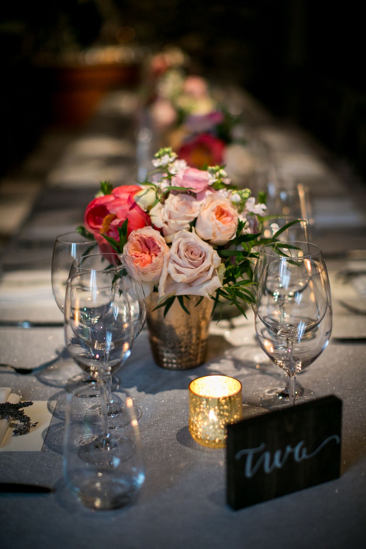 Lauren and Jordan Wedding – Low Centerpiece for Long Table – Blue Hill at Stone Barns NY – Photography by Craig Paulson
