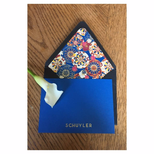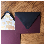 I use heat to actually emboss names onto cardstock and envelopes, which gives them a shiny and raised finish that looks absolutely beautiful. I also hand-line each envelope in fine art paper sourced all over the world.