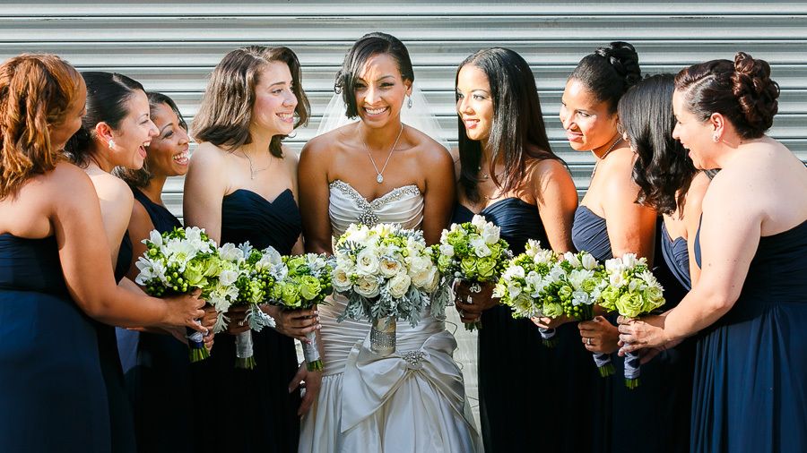 One wedding photo that always makes us smile is the bridesmaids’ bouquet shot. Being surrounded by best friends and sisters is a beautiful moment for brides and good wedding photographers make sure to capture it. Formal wedding party portraits are classic, and playful or candid pictures are perfect for capturing personalities. But we have a soft spot for pictures of brides and bridesmaids posing close together, holding out bouquets to form a giant cluster of flowers.