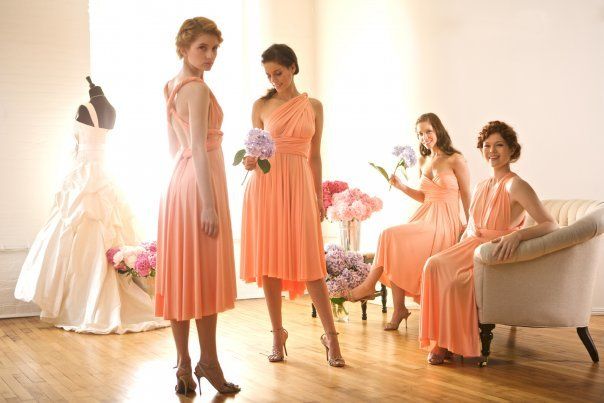 Secondly, allowing your bridesmaids the chance to be a little a creative with their dresses can be an inspiring and fun way to insure they love how they look. Dresses that twist and tie in a variety of styles give the wearer the opportunity to select a look that flatters them the most. The added bonus is that your bridesmaids may bring some fun diversity to their look.