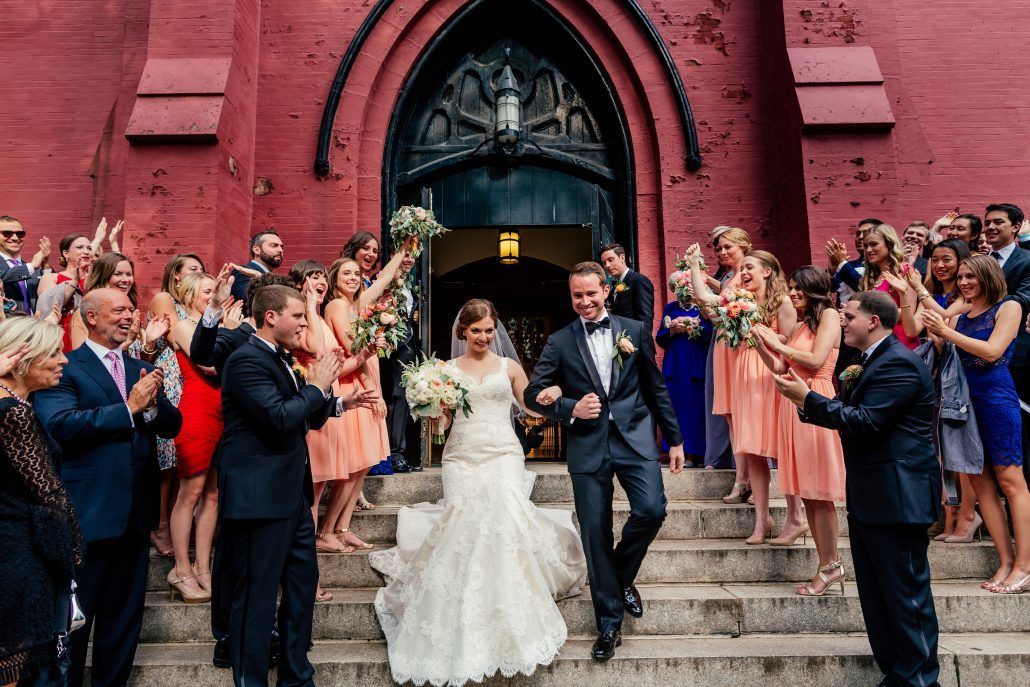 And have you ever seen such delightful bridesmaids? Andrea’s girl squad was decked out in peachy keen Donna Morgan, and carried mesmerizing bouquets of coral Peonies, peach garden Roses, and light pink Ranunculus.
