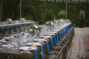 Christina & Derek Wedding – Low Centerpiece Tablescape – The Foundry LIC – Kevin Markland Photography