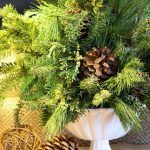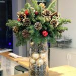 - Fresh Green Christmas Flower Arrangement with Pine Cones – via StoneGable
