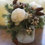- Christmas Holiday Centerpiece Arrangement with Peony, Spruce, Pine Cone and Berries – via Pinterest