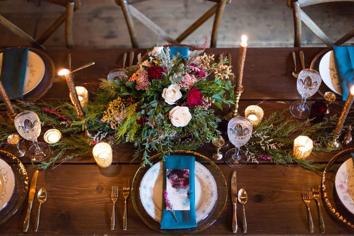 The bride planning a wedding this time of year has much to look forward to when it comes to creative décor and styling. While the availability of flowers is limited, the season offers a bounty of fruits and vegetables that look stunning in table centerpieces. The more candles adorning a tablescape or aisle the better. And we could go on and on about the wonderful food and drinks this time of year brings. It’s all about comfort food right now, and incorporating a pumpkin pie and apple cider cocktail into a wedding menu will leave guests full and happy.
