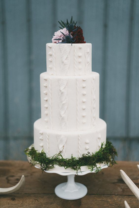 Now it’s time to talk dessert! A naked cake decorated with flowers, berries, and greenery looks rustic and charming. Give the classic all white cake a seasonal makeover with frosting that mirrors a cozy cable knit sweater. Looking for an alternative to cake? We love the idea of a dessert buffet of mini pies!