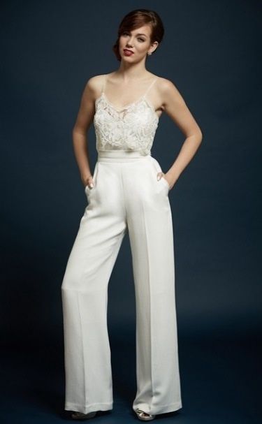 Schoneveld designs gorgeous, noteworthy gowns but we got a peek of her 2015 collection and were struck by these Silk Bridal Pants. Chic and elegant, these would be perfect for a fashion-forward bride inspired by the Stella McCartney pantsuit Amal Alamuddin chose for her civil ceremony.