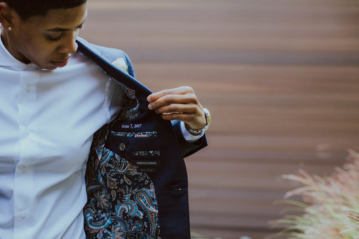Ashley & Tiffany Wedding – Jacket Embroidery by Indochino and My Suit – Green Building Brooklyn – Amber Gress Photography