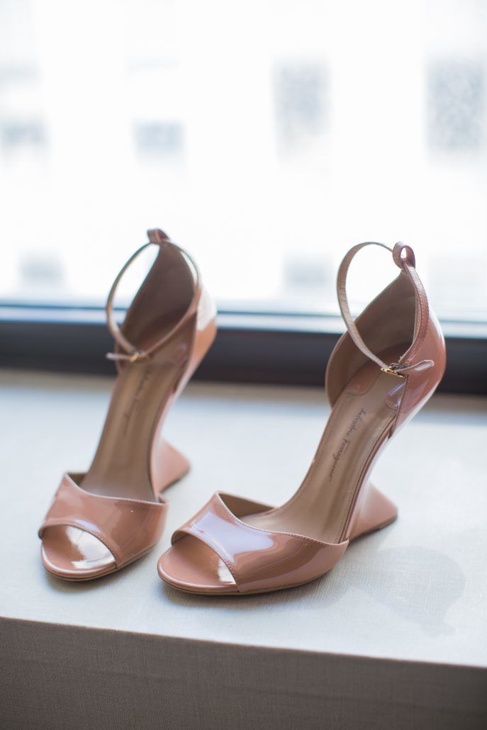 Once the venue and date were confirmed, Jean had only four months to look for a dress. Because of her busy schedule and short timeline, she sometimes attended bridal salon appointments alone and her sisters and mother joined whenever possible. One afternoon, she and her oldest sister, Joanne, made another visit to Monique Lhuillier on the Upper East Side. The esteemed fashion designer is known for her frothy tulle skirts, dramatic silhouettes, and decorative flourishes. Jean, on the other hand, envisioned herself wearing something classic and simple, but with a modern sensibility. So when her sister pointed out the Fleur gown, she didn’t think much of it at first. “I would never have chosen the dress for myself. It was completely the opposite of what I ever pictured myself in!” says Jean. The blush colored design featured a voluminous, multi-tiered ball gown skirt and strapless lace top. “After trying the dress on for my mother and other sisters, it was clear this was the one.” Jean accessorized her stunning gown with a cathedral length veil, also by Monique Lhuillier, and Ferragamo patent leather sandals.