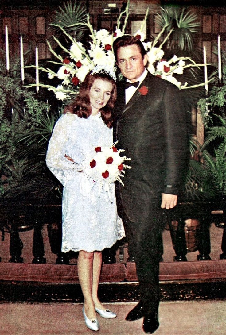 Johnny Cash and June Carter got ‘married in a fever’ in Franklin, KY in 1968. June wore a short lacy dress in baby blue with a matching crown and carried white bouquet dotted with red roses. Adding a splash of red is a great way to spin classic pastels on their heels, whether as bright structural accents in a centerpiece, or a sprinkle of berry tones in your bridesmaid’s bouquets.