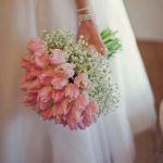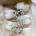 Tulips bloom in the spring and early summer and produce wonderful wedding work. The bulbs bloom in a classic cup shape, with layers of petals curling out from all angles.  Tulips’ dark centers create beautiful contrast with their light outer petals.