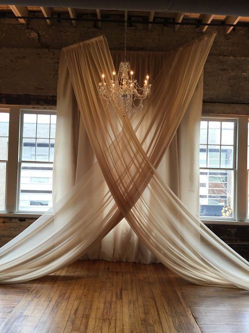 Chiffon and Chandelier Ceremony Backdrop – via brides.com