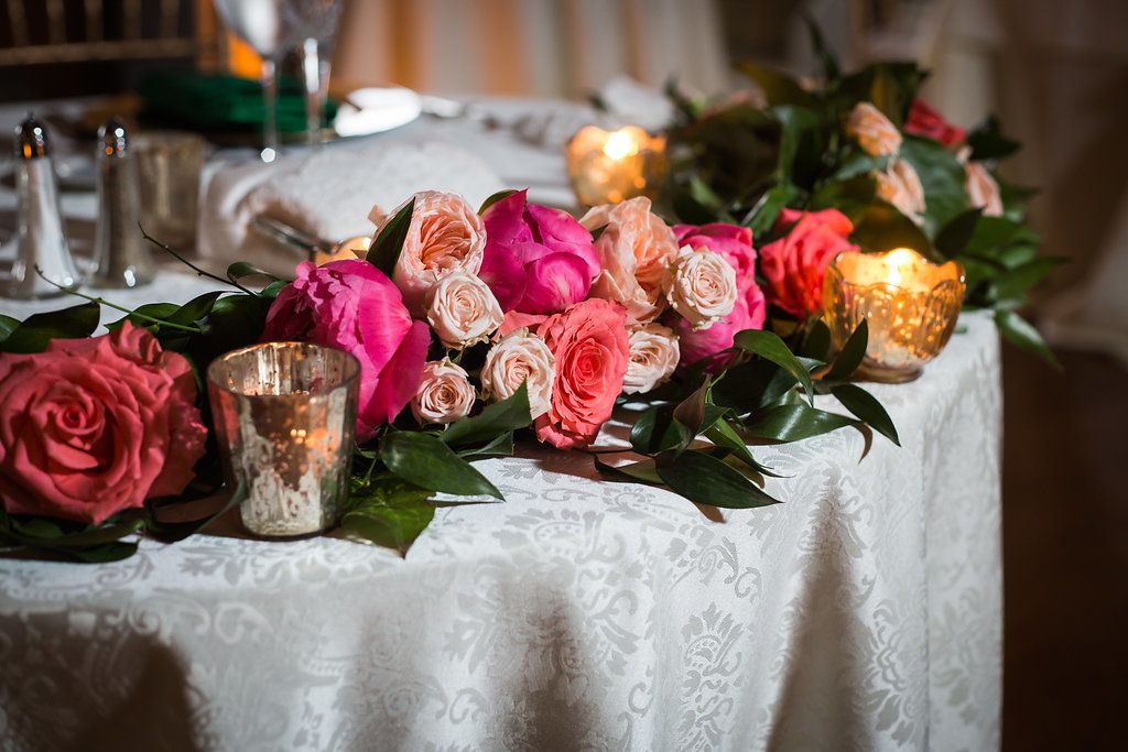 For a display that will literally have your guests saying “ahhhhhh,” go for arrangements featuring petal soft florals such as roses and peonies with light greenery. Complement with gold accents, votive candles, and an adorable “Mr. & Mrs” or “Just Married” sign.