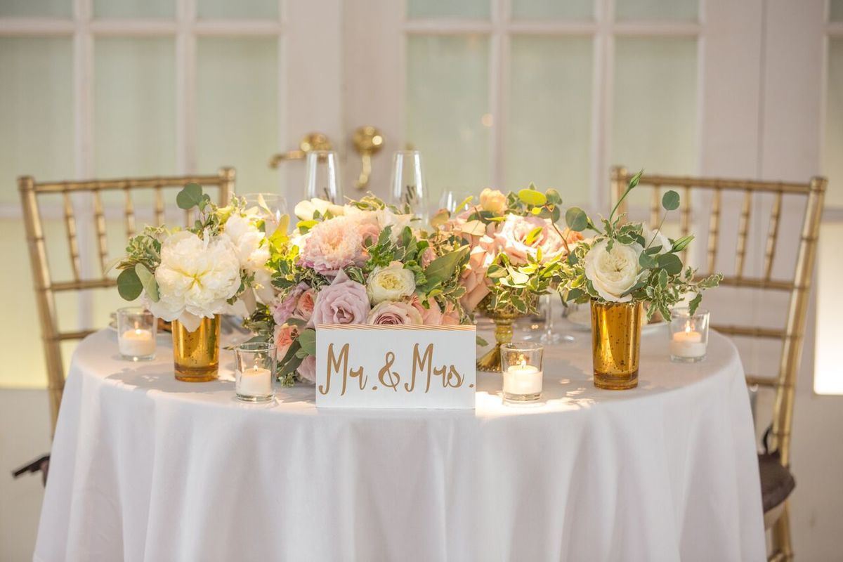The vows have been exchanged and now it’s time for the newlyweds enjoy the celebrations at their exclusive table for two. These days, more and more couples are opting to have a sweetheart table set up during the reception. Not only providing a romantic space to relax after an exciting, but admittedly busy day, the sweetheart table also serves as a unique decor feature where you can get really creative with flowers, linens, and furniture. From simple elegance to high impact glamor, here are gorgeous sweetheart table decor ideas that will make your wedding memories all the more special!