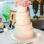 Kyna carried a bridal bouquet of fluffy, light-pink garden roses. Bouquets composed of a single type and color of flower are always a classic choice. The groom’s boutonniere was a single, budded garden rose with an accent of greenery.