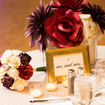 Katie’s wedding was set to take place in Massachusetts in November – not an ideal situation for a bride-to-be who desires local fresh flowers to decorate for her special day. Instead of giving up on her floral fantasies, Katie took matters into her own hands, literally, and taught herself the art of making paper flowers. She spent night after night making roses and calla lilies to create her entire wedding décor – one bridal bouquet, eight bridesmaids bouquets, 21 boutonnieres, and over 171 single flowers for the centerpieces! Needless to say, her guests were stunned by the whole presentation.