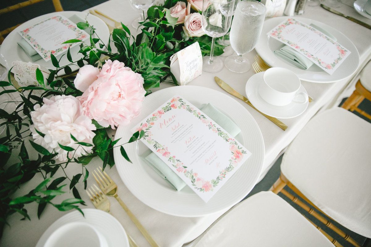 Mary & Galen Wedding – Garland tablescape Greenery Blush Flowers – The Hudson Hotel NYC – Jacquelyne Pierson Weddings