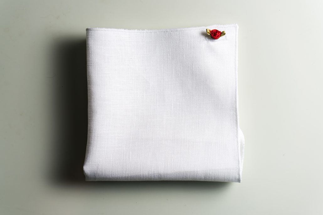 It used to be one or the other. If you were going to wear a pocket square, you weren’t going to wear a boutonniere and vice versa. One thing you want to avoid is making the groomsmen’s jacket too busy. Complement the suit, but maintain elegance. With our wedding pocket squares, it was about merging the two looks together – that’s why we added a little rose button.