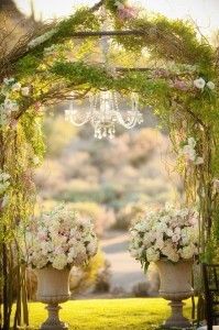 These days, as business has truly taken off, and wedding season in full bloom, I still find time to locate enchanting and inspiring images of Chuppahs, as well as other floral arrangement designs. This allows me to stay fresh,revived, and ready to tackle any creative challenge so as to give my clients the Chuppahs, and weddings, of their dreams. One concept I have truly fallen in love can be found to the left. How amazing to see a chandelier within a Chuppah: this is absolutely gorgeous. It makes me all the more excited to design next wedding season’s Chuppahs, and for many more seasons after that.