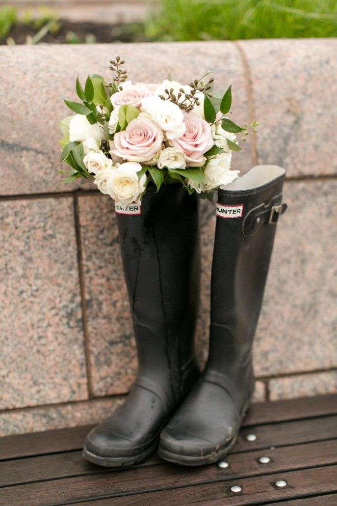 The Reinecke wedding was the kind we dream about. These Boston College sweethearts held their wedding at Battery Gardens, accompanied by the mellow vibes of the Clark Eno Orchestra. The bride wore Kate Spade shoes for the ceremony and reception, but had no problem slipping into Hunter boots when the weather turned wet. From champagne with her bridesmaids until the moment she said “I do,” bride Kristen McEvitt was the perfect image of a princess.