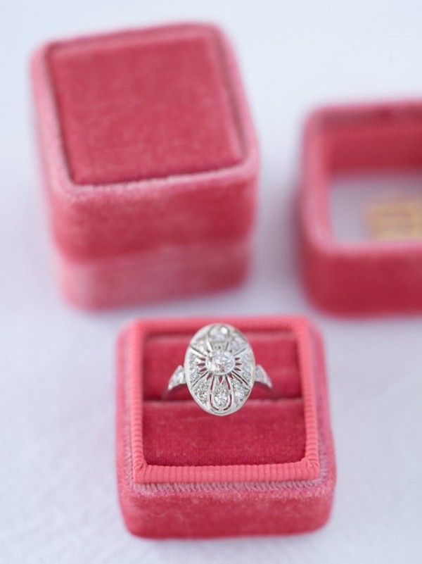 Irresistible, bright ring boxes by the woman behind Grey Likes Weddings. Created with rare, vintage French velvet in vibrant colors, every detail of these petite treasures is design perfection. Heirloom-worthy boxes can be embossed with a single gold monogram initial. Colors are charmingly named and may have limited availability. Coral-pink box shown is “The Parlour.” Shop and see more photos here: The Mrs. Box
