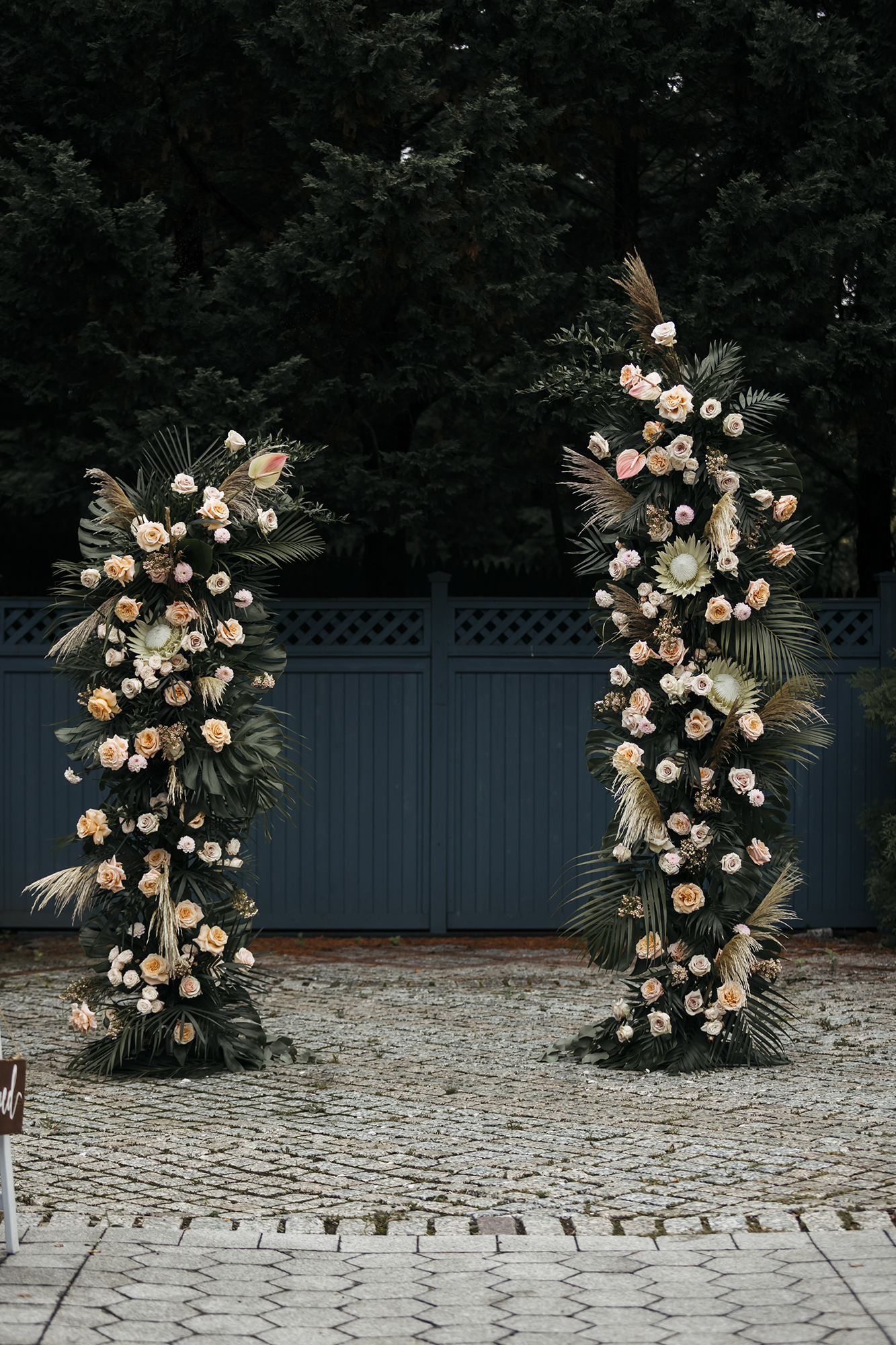 Katie and Bryan Wedding – Freestanding Ceremony Arrangements – New York Botanical Garden – Sarah Churchill Photography