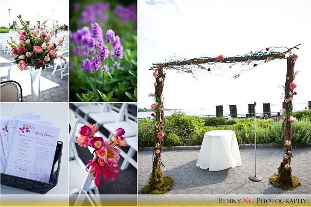 Esther and James were married in the Spring at Battery Gardens in the historic Battery Park. In case you did not know, “Battery Park is a 25-acre public park located at the Battery, the southern tip of Manhattan Island in New York City, facing New York Harbor.” (Wikipedia) Loved this beautiful location and designing the perfect arrangements for this affair!