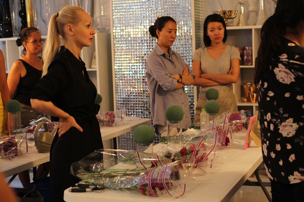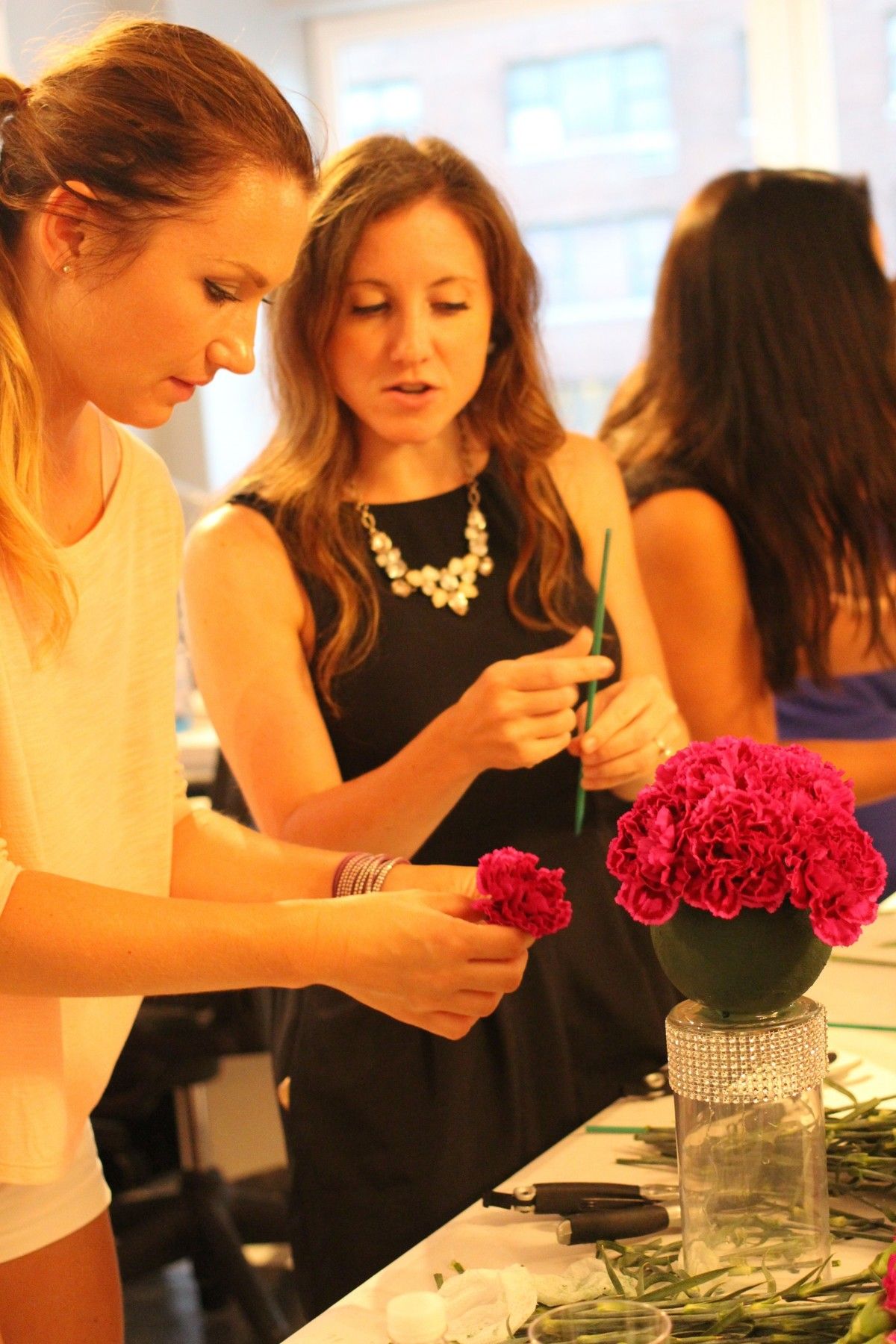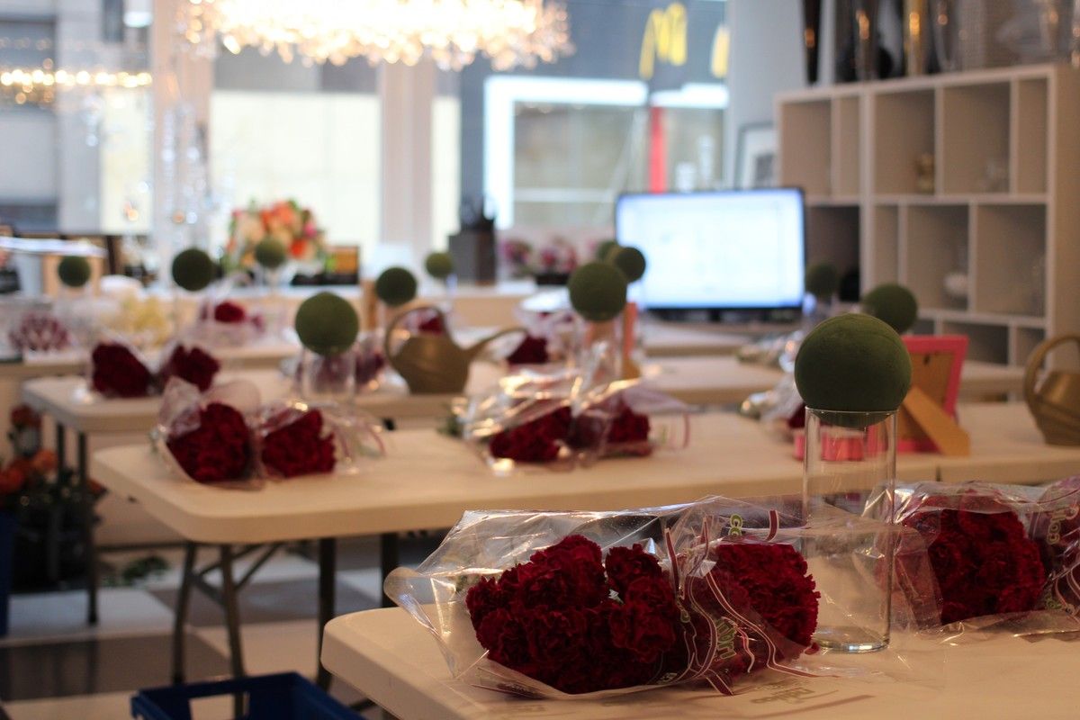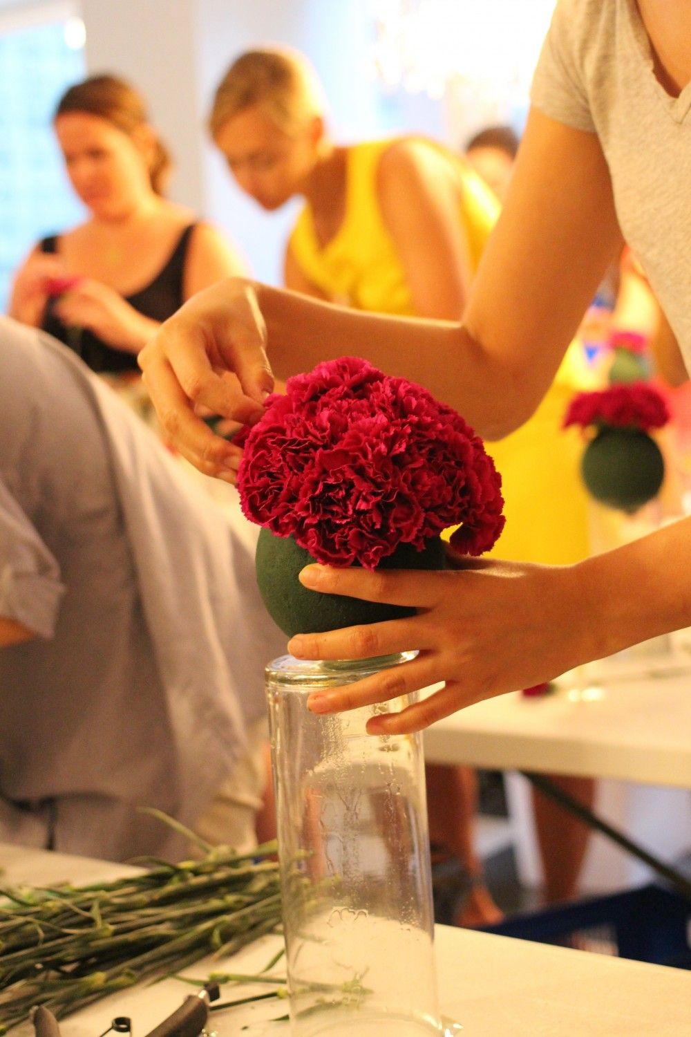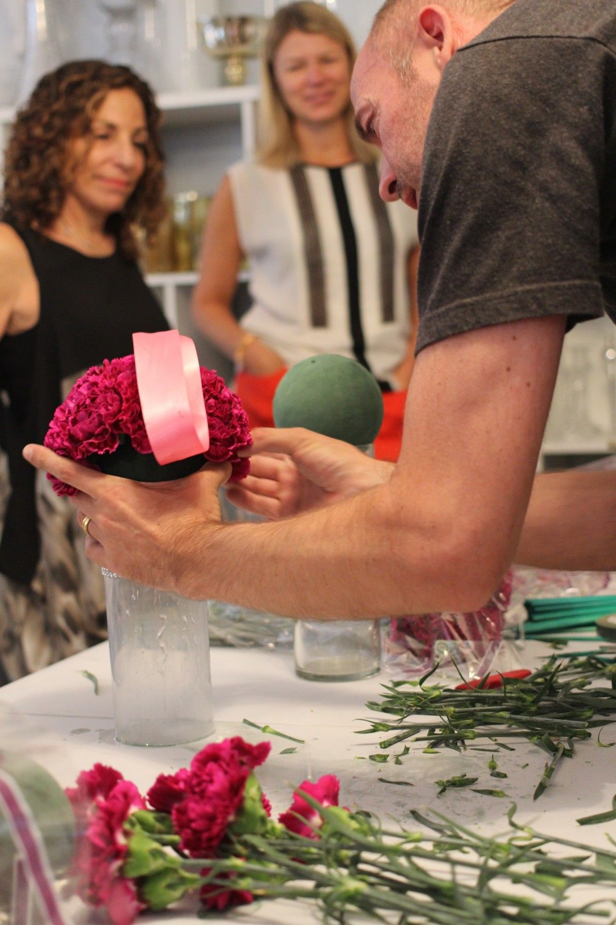 Here’s a look behind the scenes of our recent flower class, Pomanders & Prosecco. Expert floral stylist, Dieter, demonstrated the technique of crafting pomanders, using vibrant, fuchsia carnations. We love welcoming attendees into our new showroom, and seeing everyone’s enthusiasm as they learn how to use tools of the trade. Best of all, we just love meeting others who love flowers!