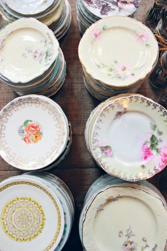 - Modern Vintage Tea Party Decor – Vintage Dishes – Southern Wedding – via A Low Country Wed.com