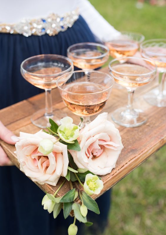 Where to even begin with dessert?! Make it a shower your bride will never forget and present her with a cake decorated with romantic flowers. Round out the sweets with classic shortbread, sugar cookies with edible flowers, scones with jam and clotted crème, lemon bars, and an assortment of chocolate covered fruit. Stick with traditional teas and offer black, herbal, and an iced flavor such as lavender-mint. Water with fruit slices and lemonade are perfect springtime beverages. For a cocktail, we can’t think of anything more beautiful and appropriately named than the Blushing Bride Champagne Cocktail made with champagne, grenadine, passion fruit nectar, and seasonal berries.