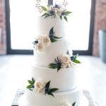 We love when floral décor celebrates the essence of the season like the blossoms at this summer wedding at Battello Restaurant. Clusters of ivory spray roses and blue thistle give this cake a fresh garden-inspired feel.