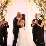 The couple said their vows beneath an enchanting chuppah of curly willow branches adorned at their meeting with a spray of white dendrobium Orchids. Samara remembers seeing the chuppah for the first time, set and ready for the ceremony. “It made everything feel real. I was still in my robe. This was when I shed my first, but not final, tear of the night.”