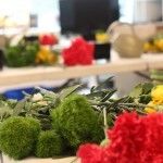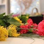Last night’s flower-class theme was Contemporary Centerpieces and we had so much fun! Fresh, bright blooms, including fuchsia carnations, yellow pincushion protea and green dianthus, set the tone for bold, modern arrangements.